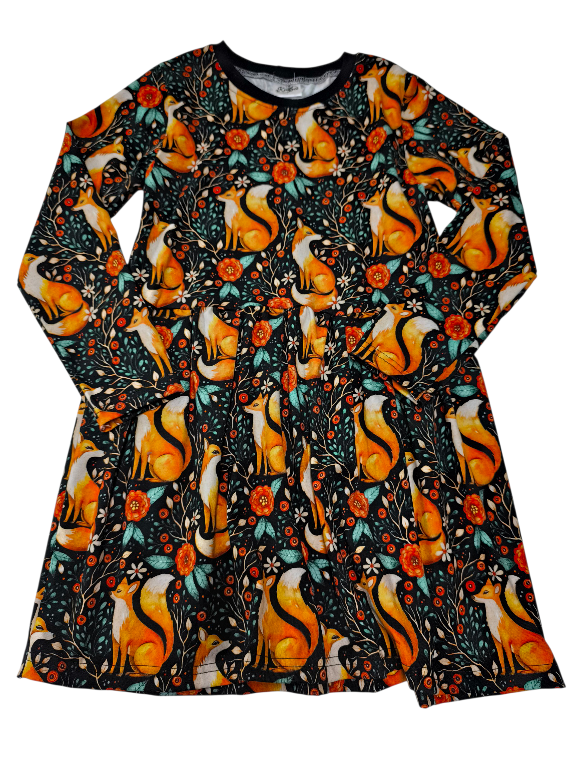 Dívčí šaty s dlouhým rukávem – tmavé s motivem lišek